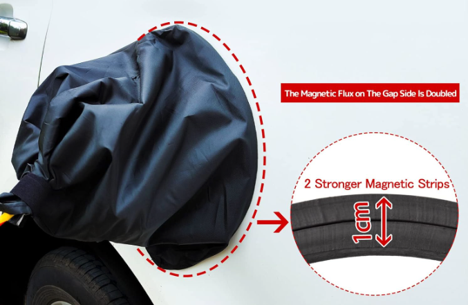 Sản phẩm cũng có hai dải nam châm mạnh và linh hoạt được may vào vải chống nước. So với các bảo vệ khác chỉ có một dải nam châm, "Túi bảo vệ khi sạc cho xe EV" có hiệu suất tăng 80% vì có hai dải nam châm. Điều này giúp tăng lực hấp dẫn nam châm và ổn định sản phẩm trên xe.