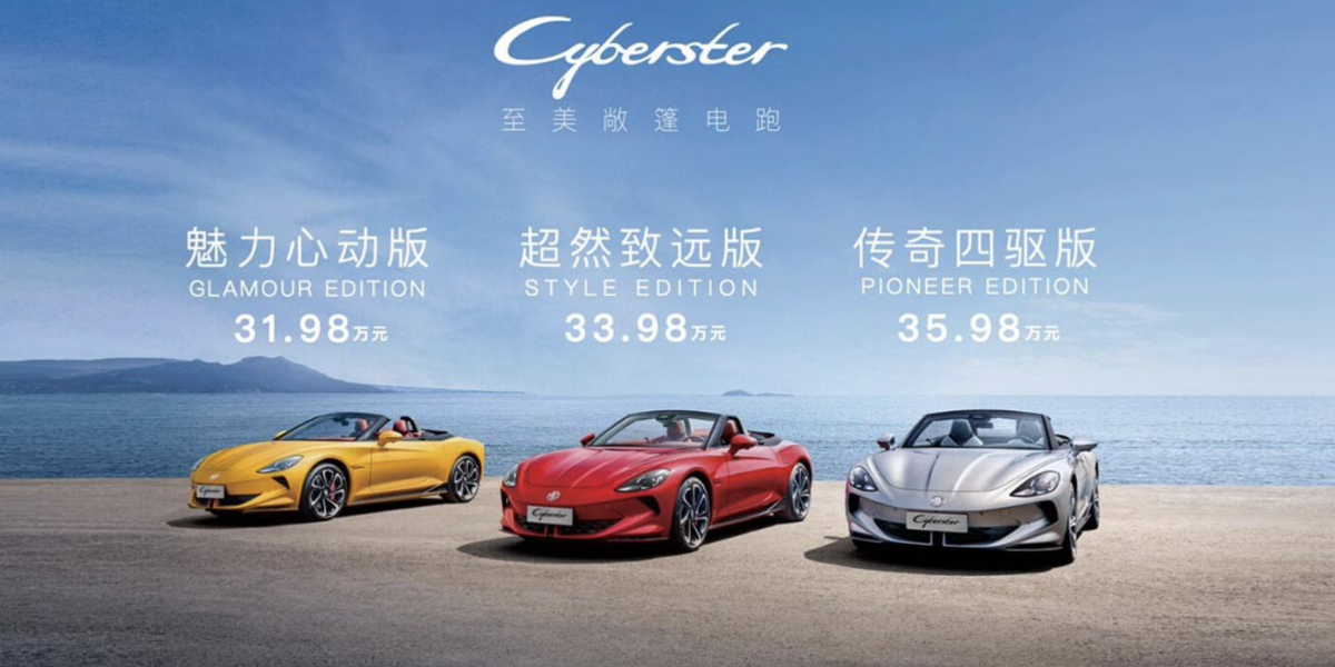 Cyberster có 3 phiên bản là Glamour Edition, Style Edition và Pioneer Edition, mỗi bản có sức hút riêng. Giá bán lẻ của 3 phiên bản này lần lượt là 319.800 NDT (44.350 USD), 339.800 NDT (47.100 USD) và 359.800 NDT (49.900 USD), giúp Cyberster trở nên phù hợp hơn với đa số người tiêu dùng.