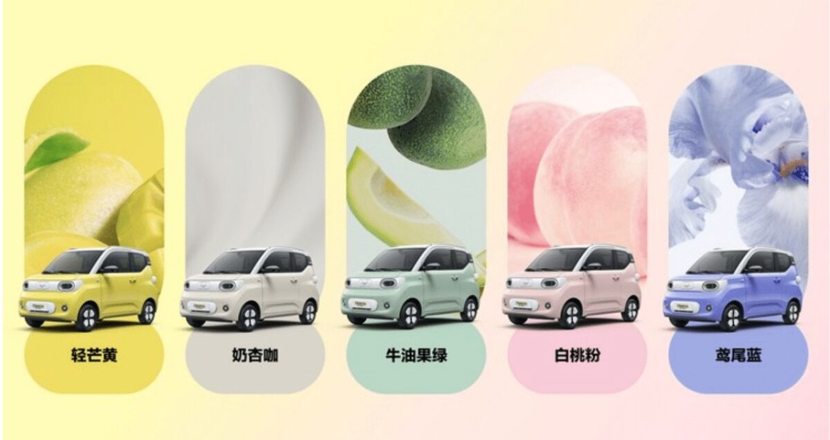 Xe có 5 tùy chọn màu sắc ngoại thất cho người tiêu dùng lựa chọn: Vàng Light Mango yellow, cà phê sữa Milk Apricot coffee, xanh bơ Avocado Green, hồng đào White Peach Pink, và xanh Iris Blue.