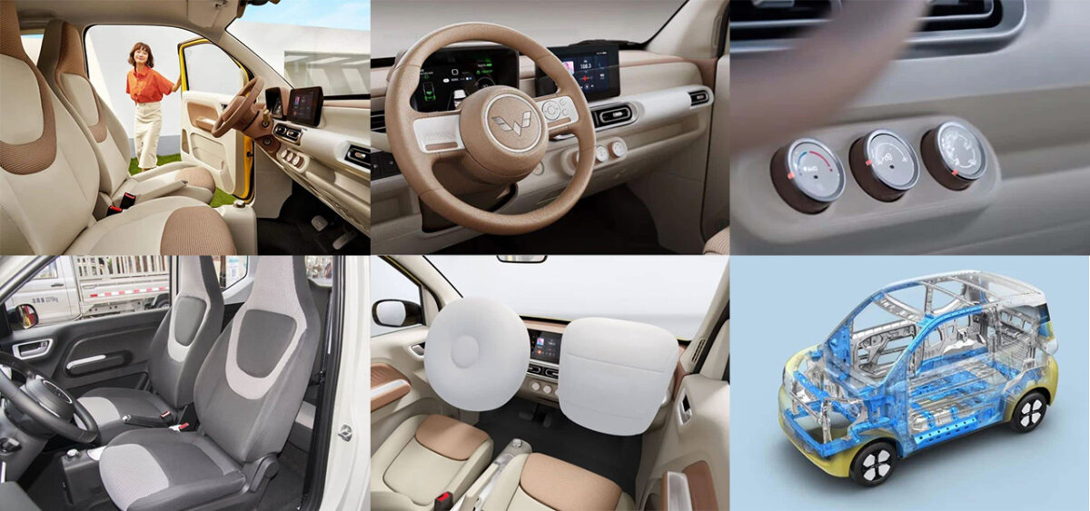 Về kích thước, Wuling HongGuang MiniEV thế hệ mới to hơn một chút, giúp mang đến không gian cabin thoải mái hơn. Kích thước xe dài x rộng x cao lần lượt là 3.064 x 1.493 x 1.629 mm, chiều dài cơ sở 2.010 mm và bán kính quay vòng 4,3 m. Trong khi đó, bản đang bán ở Việt Nam sở hữu kích thước 2.920 x 1.493 x 1.621 mm, chiều dài cơ sở 1.940 mm và bán kính quay vòng tối thiểu 4,2 m.
