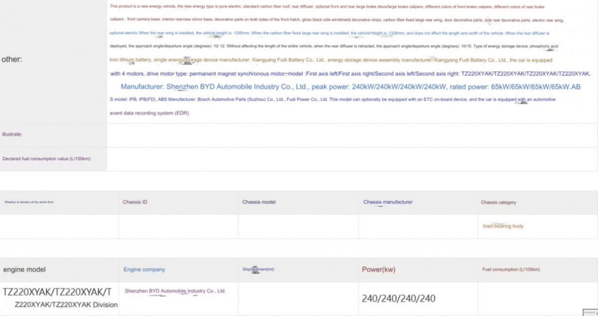 BYD gần đây đã nộp đơn xin cấp phép bán hàng cho YangWang U9, mẫu siêu xe điện đầu tiên của hãng. Theo tài liệu chính thức từ Bộ Công Thương và Công Nghiệp Trung Quốc, U9 hứa hẹn sẽ gây ấn tượng mạnh mẽ trong ngành công nghiệp ô tô. Với công suất ấn tượng là 960 kW (1,305 mã lực) cùng nhiều tính năng đỉnh cao, U9 sẵn sàng thách thức tình trạng hiện tại của hiệu suất xe điện.