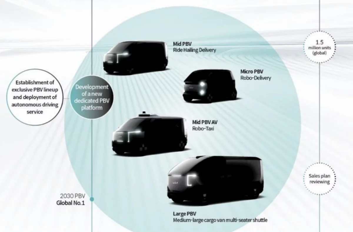 Các mẫu PBV sẽ sử dụng nền tảng eS mới của Kia và công ty dự kiến sẽ giới thiệu phiên bản lớn hơn phục vụ giao thực phẩm tươi, logistics, xe buýt và văn phòng di động. Kia đã đầu tư 758 triệu USD xây dựng nhà máy PBV ở Hàn Quốc, dự kiến hoạt động từ nửa cuối năm 2025. Việc bước vào lĩnh vực này giúp Kia cạnh tranh với các ông lớn khác như Ford, GM, Rivian nhằm chuyển đổi dần đội xe của Amazon, Walmart, FedEx, UPS sang sử dụng điện.