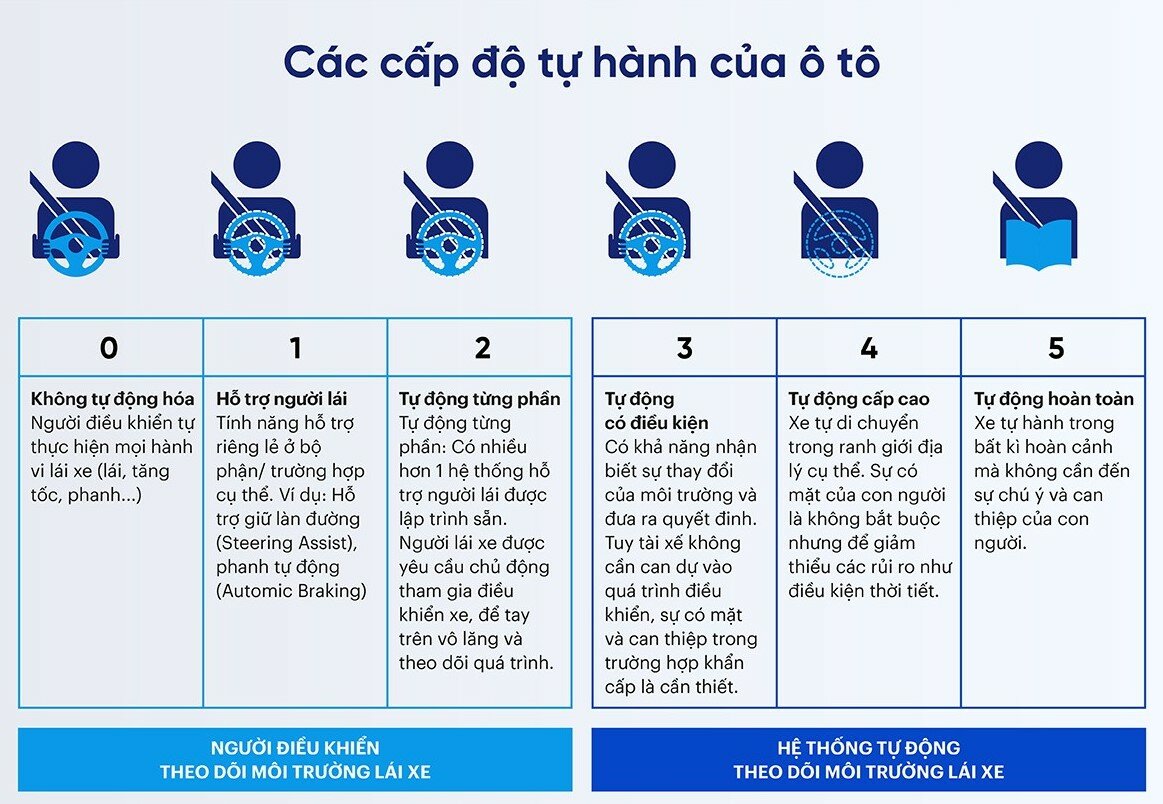 Theo tiêu chuẩn SAE (Hiệp hội kỹ sư ô tô), cấp độ L2 trở xuống chú trọng nhiều hơn đến các chức năng hỗ trợ, trong khi xe tự hành L3 có thể thực hiện một số chức năng trong những điều kiện cho phép.