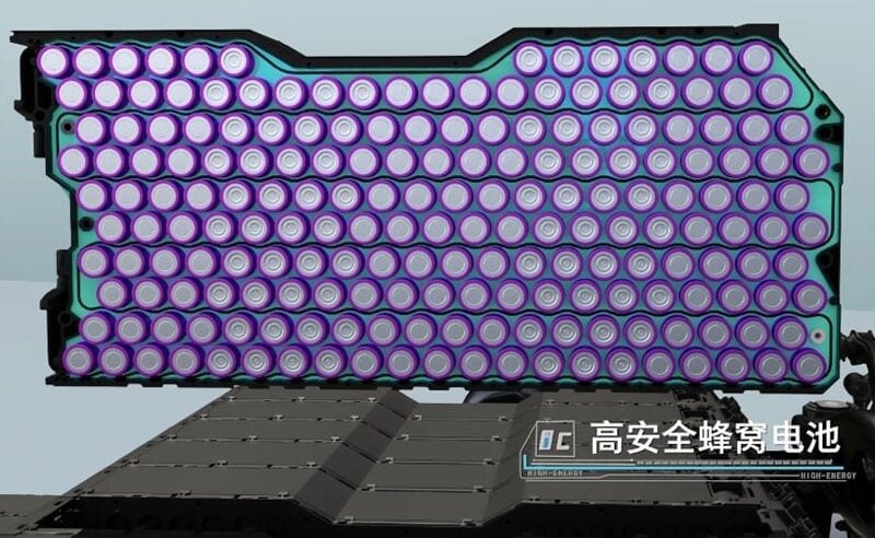 Xe điện Yiwei mới được cho là sử dụng pin natri-ion hình trụ của HiNA Battery. JAC lắp ráp pin theo cấu trúc tổ ong mô-đun UE (Unitized Encapsulation) của công ty, tương tự như CTP (cell-to-pack) của CATL và Blade của BYD. Cách bố trí có thể mang lại sự ổn định và hiệu suất cao hơn