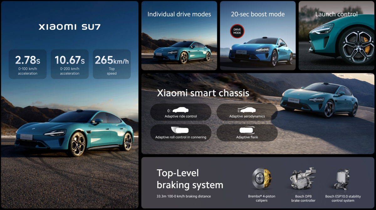 Xiaomi là hãng điện thoại lớn thứ 3 thế giới và chỉ mất 1000 ngày kể từ khi bắt đầu dự án, Xiaomi đã hoàn thành việc phát triển và sản xuất chiếc ô tô đầu tiên. SU7 gây ấn tượng bởi thiết kế truyền thống nhưng vẫn mang dấu ấn hiện đại, cùng các tính năng như 4 ống xả...