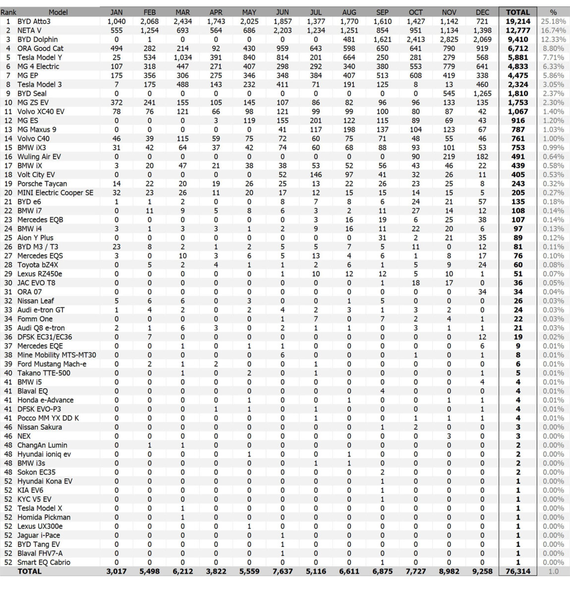 Hãng xếp sau BYD về doanh số là Neta, đặc biệt thương hiệu này chỉ mang đến một mẫu xe duy nhất, chiếc crossover Neta V cỡ nhỏ, với mức giá chỉ 549.000 baht (khoảng 380 triệu đồng). Năm nay, Neta có kế hoạch thúc đẩy doanh số bán hàng với nhà máy sản xuất ô tô địa phương bắt đầu hoạt động vào cuối năm 2023.