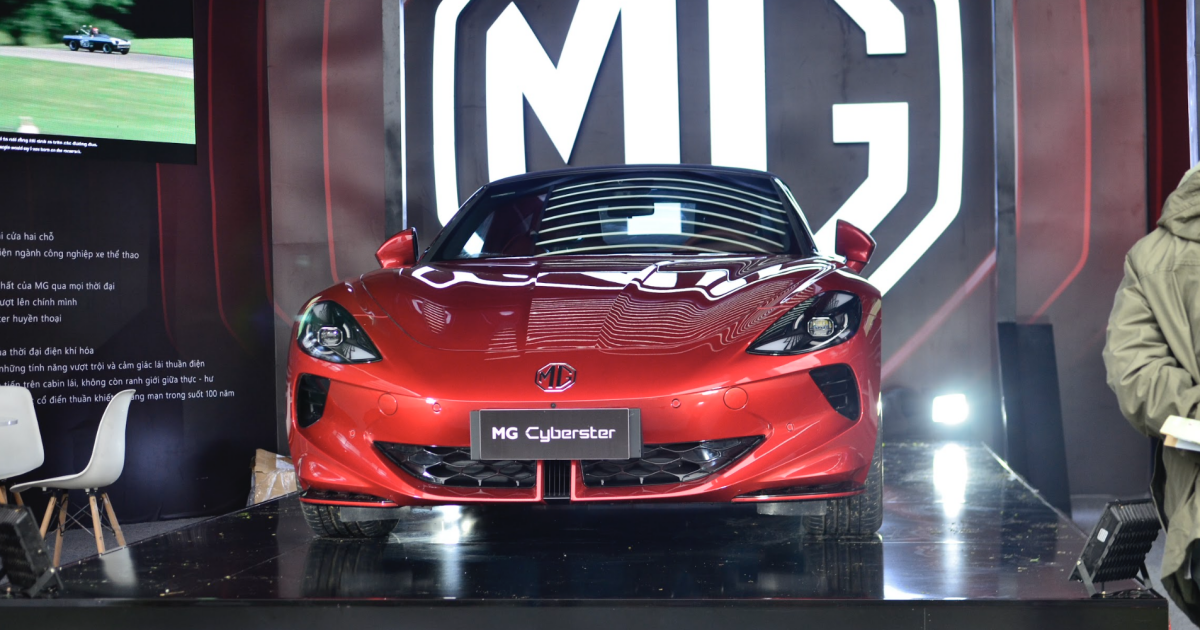 Thương hiệu MG cũng giới thiệu mẫu xe thể thao điện Cyberster màu đỏ. MG Cyberster sở hữu thiết kế ngoại thất cá tính với đặc điểm là cửa mở theo phong cách siêu xe Lamborghini, đèn LED góc cạnh, và phần mui vải có thể gấp và cất vào cốp sau. Xe có 2 phiên bản với các loại môtơ điện khác nhau ở công suất 310 hoặc 536 mã lực, tăng tốc 0-100km/h chỉ trong 3.2 giây. MG Cyberster được trang bị pin lithium-ion cho tầm hoạt động 520-580km. Giá xe dự kiến từ 61.200 USD khi bán ra thị trường châu Âu và Anh vào năm 2024.
