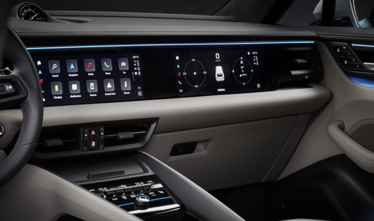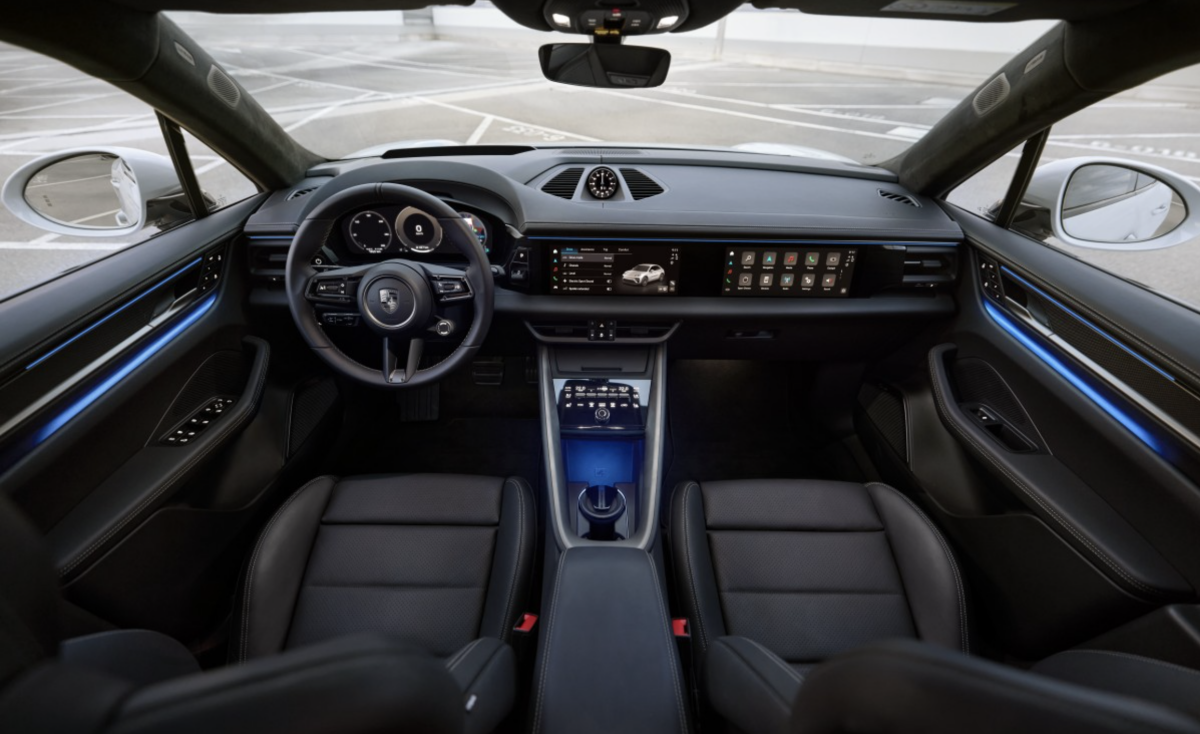Ngoại hình Macan 2024 có nhiều cải tiến, vẫn giữ phong cách thể thao đặc trưng của dòng SUV điện Porsche. Khoang lái trang bị bảng đồng hồ kỹ thuật số 12,9 inch, màn hình cảm ứng trung tâm và ghế lái 10,9 inch, hỗ trợ sử dụng Hệ điều hành Android. Trọng lượng giảm nhẹ, kích thước tổng thể cũng nhỏ gọn hơn phiên bản trước.