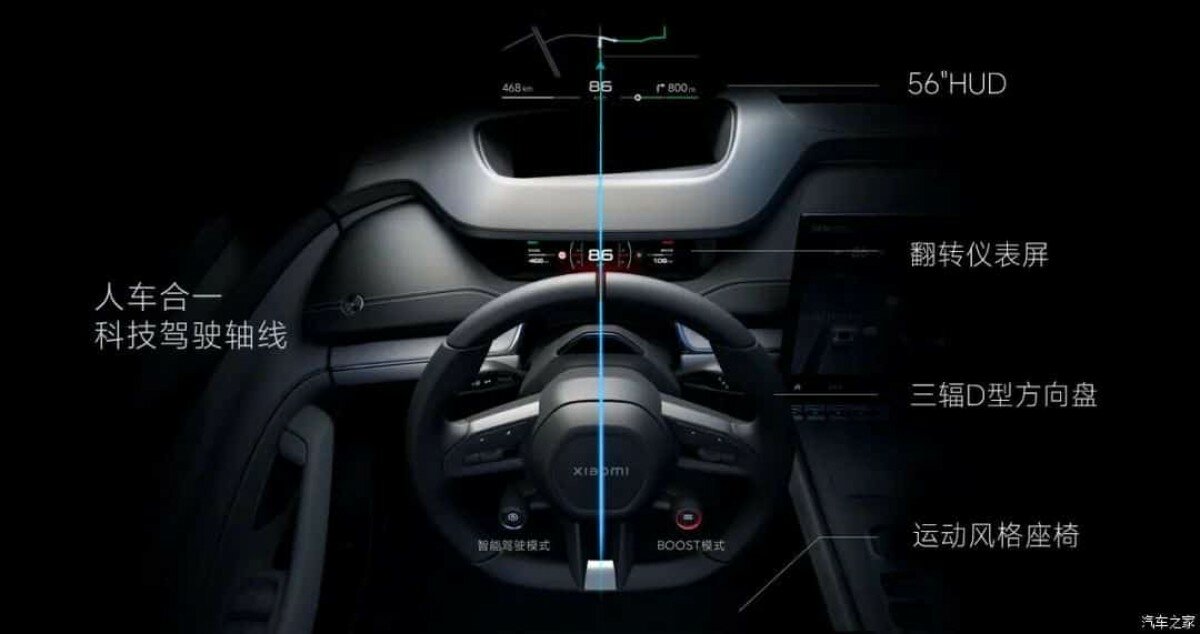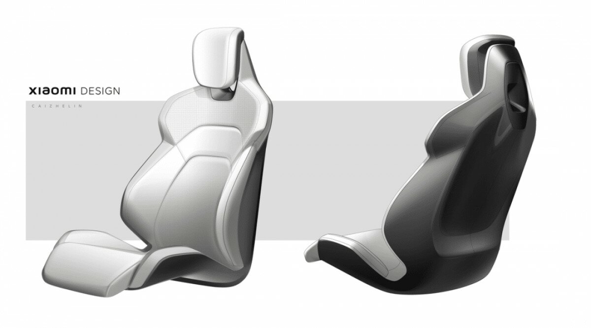 Với hàng ghế trước, Xiaomi sử dụng thiết kế thể thao cho mẫu ô tô điện của mình, đây là loại vỏ đơn có tựa đầu cố định, tựa lưng sâu và đệm đỡ hai bên hông khá sâu.