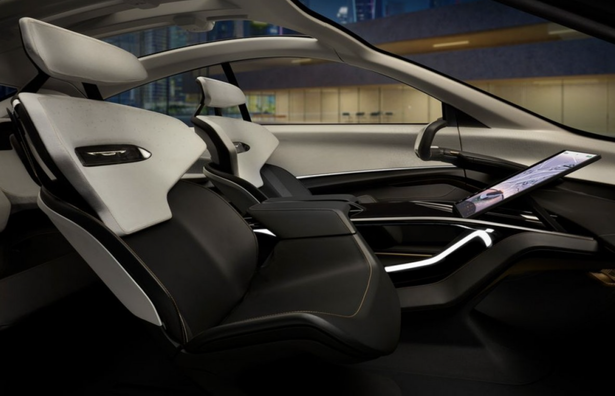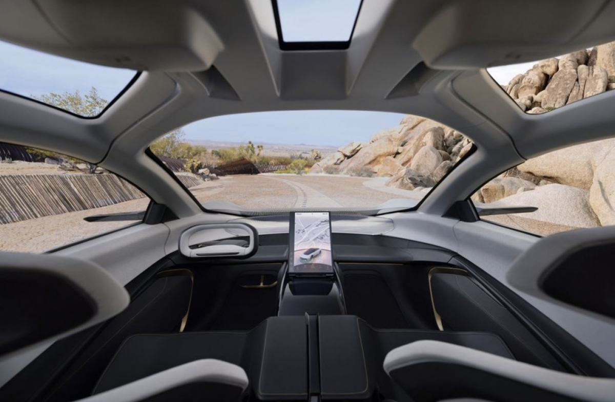 Ở trung tâm táp-lô là màn hình cảm ứng cong trải dài, hiển thị thông tin theo cách độc đáo. Nóc xe bằng kính có thể biến thành màn hình thực tế ảo chiếu hình ảnh khi ngắm sao. Vô lăng và bàn đạp có thể thu vào, biến khoang lái thành không gian giải trí di động. Hệ thống trợ lái tự động cấp độ 4 đảm nhiệm phần lớn công việc điều khiển, mang lại trải nghiệm thoải mái cho người dùng.