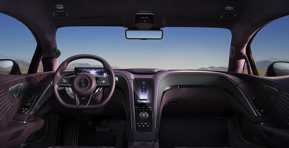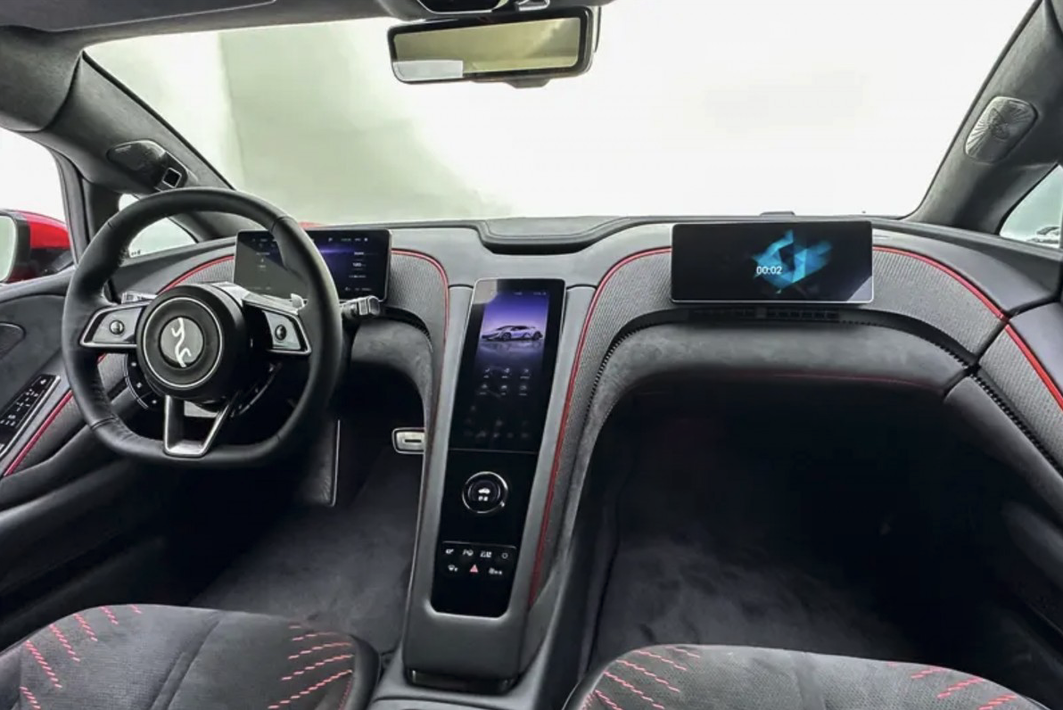 Mặc dù mạnh mẽ về công suất, BYD Yangwang U9 lại gây thất vọng về thiết kế nội thất. Ba màn hình cồng kềnh và vô lăng khổng lồ khiến nội thất trông lạc hậu so với tiêu chuẩn siêu xe hiện đại. Tuy nhiên, U9 được trang bị nhiều công nghệ tiên tiến như hệ thống đỗ xe tự động, màn hình giải trí do Qualcomm phát triển.