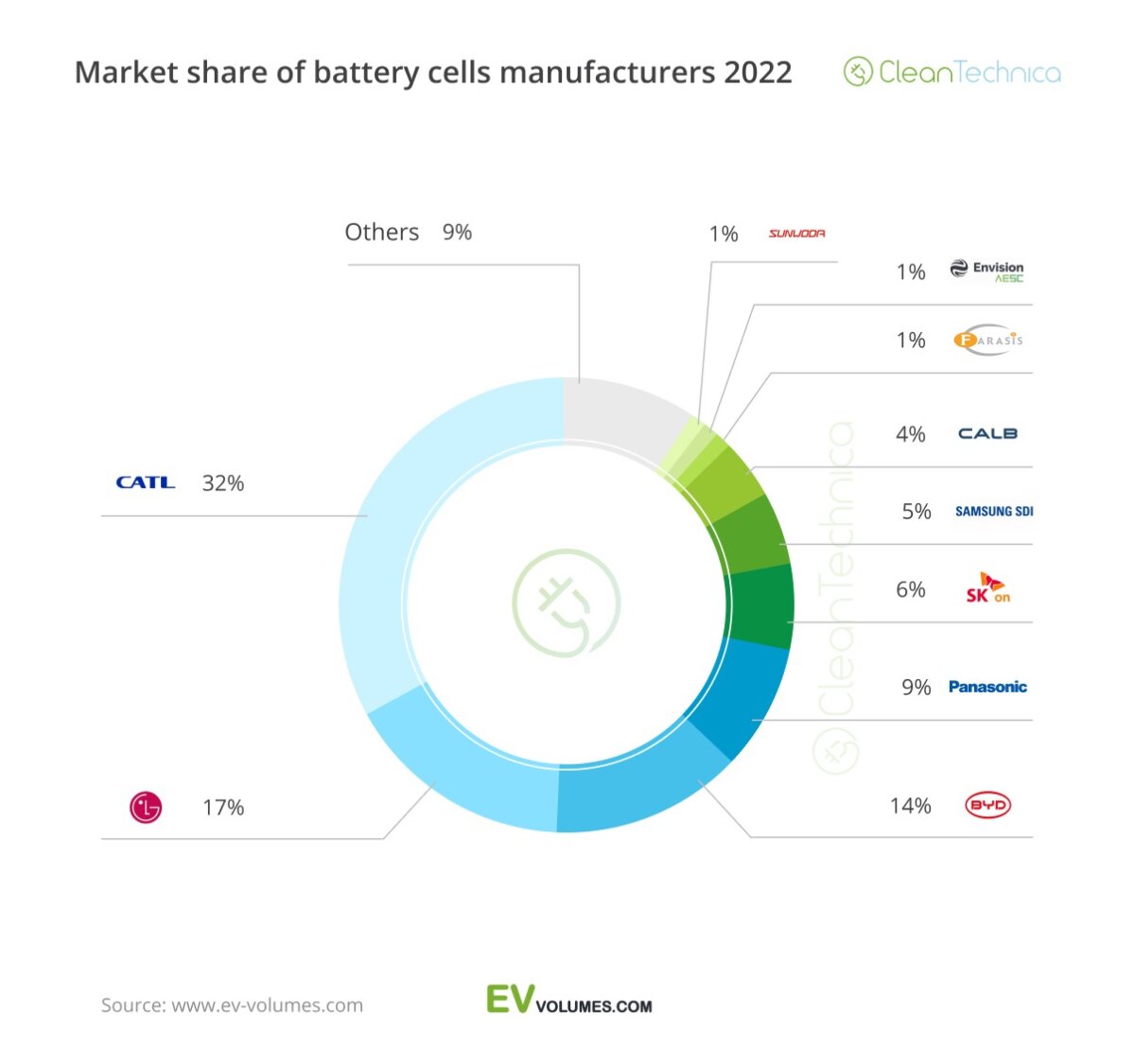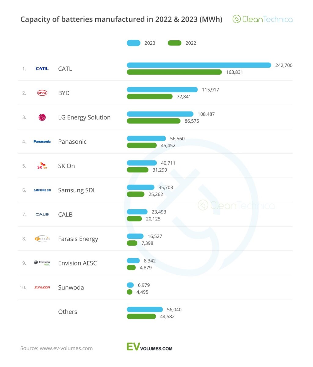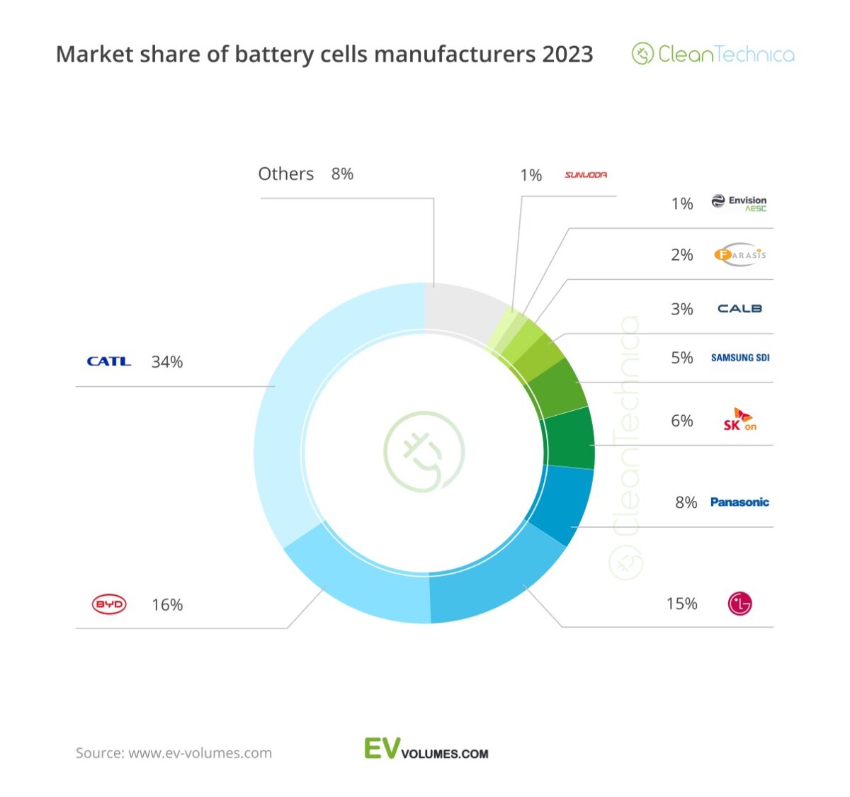 CATL tiếp tục dẫn đầu và đã tăng thị phần từ 32% lên 34% do tốc độ tăng trưởng cao hơn mức trung bình. Nhờ doanh số bán hàng vượt trội của Tesla Model Y sản xuất tại Trung Quốc, mẫu MG4/Mulan của SAIC, thành công của Li Auto, cũng như nhiều khách hàng khác của họ.