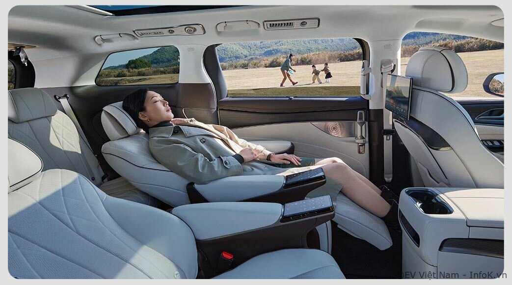 Phiên bản 4 chỗ của Denza D9 có tên là Pioneer, đây là biến thể cao cấp nhất của dòng xe này với hệ thống lọc không khí Forest, ghế chỉnh điện 18 hướng, massage 18 điểm, vách ngăn khoang hành khách với màn hình cực lớn dành cho hàng ghế sau.
