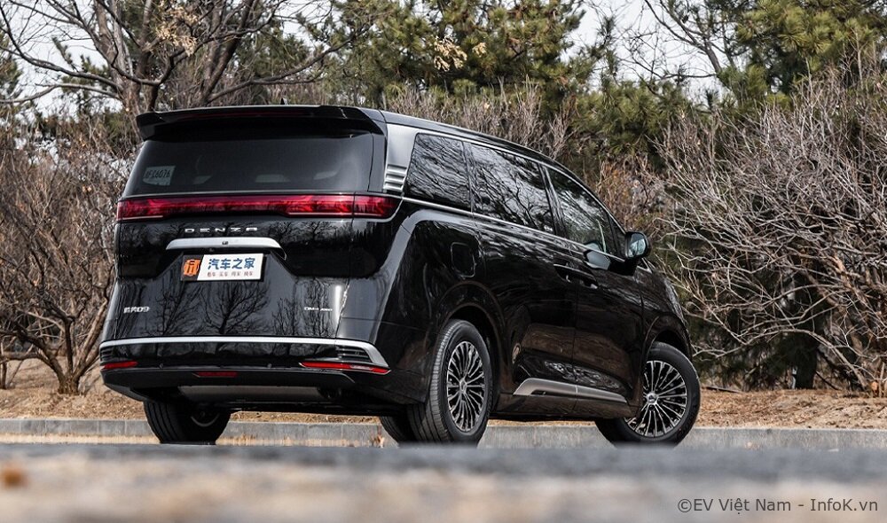 Mui xe kéo dài vuốt cao về phía sau đuôi xe với cánh gió, xe có cụm đèn hậu đơn vắt ngang toàn bộ bề rộng thân xe. Cải tiến chính của D9 2024 là trang bị cửa hít điện tiêu chuẩn.