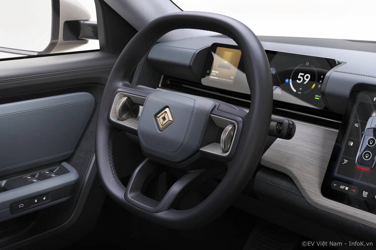 Nội thất của xe khá đơn giản, với hai màn hình lớn tách rời, trong đó vẫn trang bị màn hình LCD cho người lái, cùng một màn hình giải trí cỡ lớn nằm ngang. R2 đã tối giản mọi nút bấm ở khu vực trung tâm, vô lăng chỉ còn hai cụm phím dạng xoay lớn. Bệ tì tay nhiều tầng với ngăn chứa 2 cốc lớn có thể đẩy vào khi không sử dụng.