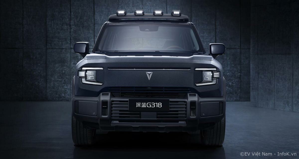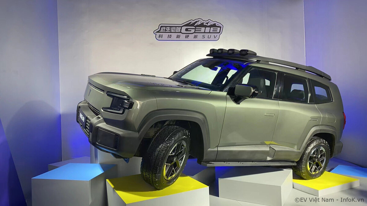 G318 có kiểu dáng vuông vức quen thuộc trên các dòng xe off-road hiện nay. Mặc trước thiết kế góc cạnh với lưới tản nhiệt kín cỡ lớn có gắn logo thương hiệu, kết hợp đèn LED hình chữ C và bumper hầm hố đặt thấp phía dưới.