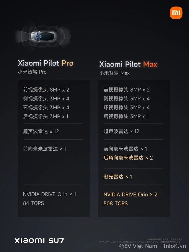 CEO Xiaomi, Lei Jun trước đây cho biết nhóm R&D hệ thống lái xe thông minh của công ty có hơn 1.500 kỹ sư và kết quả là hôm nay, Xiaomi SU7 chính thức ra mắt với hai cấp độ hệ thống hỗ trợ người lái (ADAS) tiên tiến là Xiaomi Pilot Pro dựa trên camera quan sát và Xiaomi Pilot Max kết hợp camera quan sát và LIDAR.