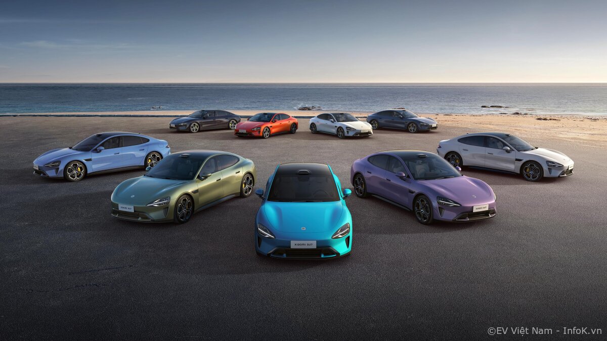 Xiaomi SU7 cung cấp 9 màu ngoại thất gồm: Xanh lam vịnh, Cam dung nham, Xám thanh lịch, Xanh lam sao băng, Tím rạng rỡ, Xanh lá ô liu, Xám đá phiến, Trắng ngọc trai và Đen kim cương. Việc giao phiên bản Tiêu chuẩn và Max sẽ bắt đầu vào cuối tháng 4, phiên bản Pro vào cuối tháng 5.