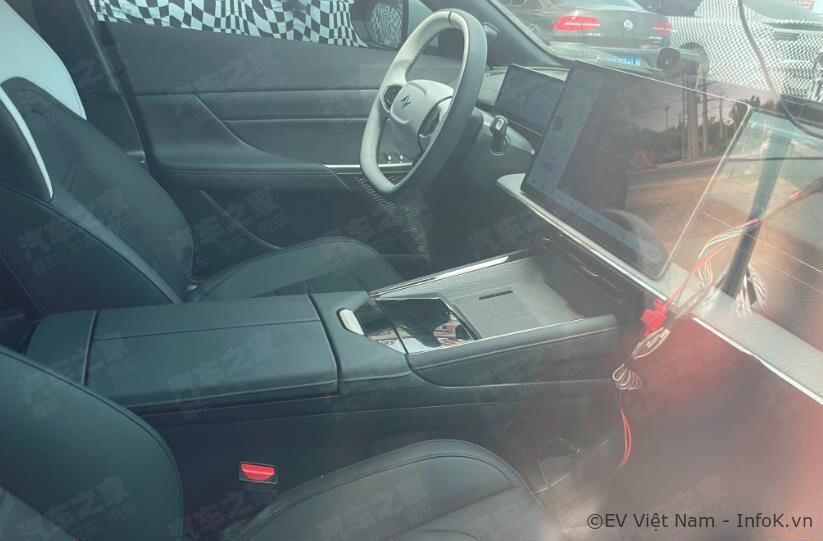 Những bức ảnh chụp được cho thấy bảng điều khiển của Dongfeng eπ 008 phần lớn giống với người anh em sedan của nó. Cụm đồng hồ LCD 8,8 inch và màn hình trung tâm giải trí nổi 15,6 inch. Vô lăng hai chấu đa chức năng được trang bị cùng ghế bọc da và đế sạc không dây.