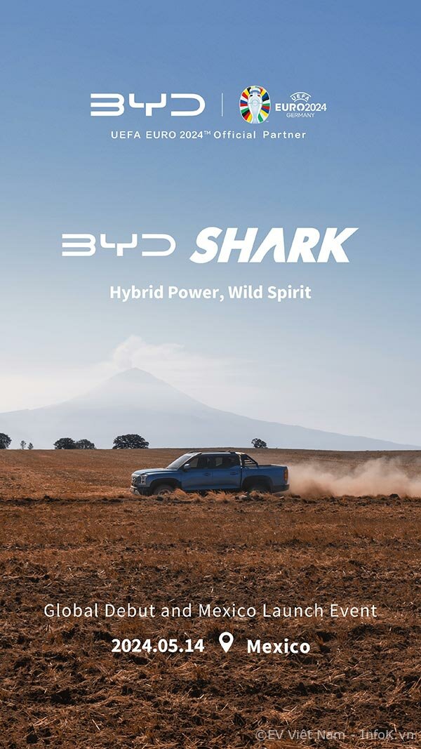 Sau khi lỡ hẹn Triển lãm ô tô Bắc Kinh vừa diễn ra cách đây không lâu, BYD thông báo chốt lịch ra mắt mẫu xe bán tải đầu tiên của họ - BYD Shark tại Mexico vào ngày 14 tháng 5 tới đây, đánh dấu lần đầu tiên trong vài năm qua hãng ra mắt mẫu xe mới tại thị trường nước ngoài.