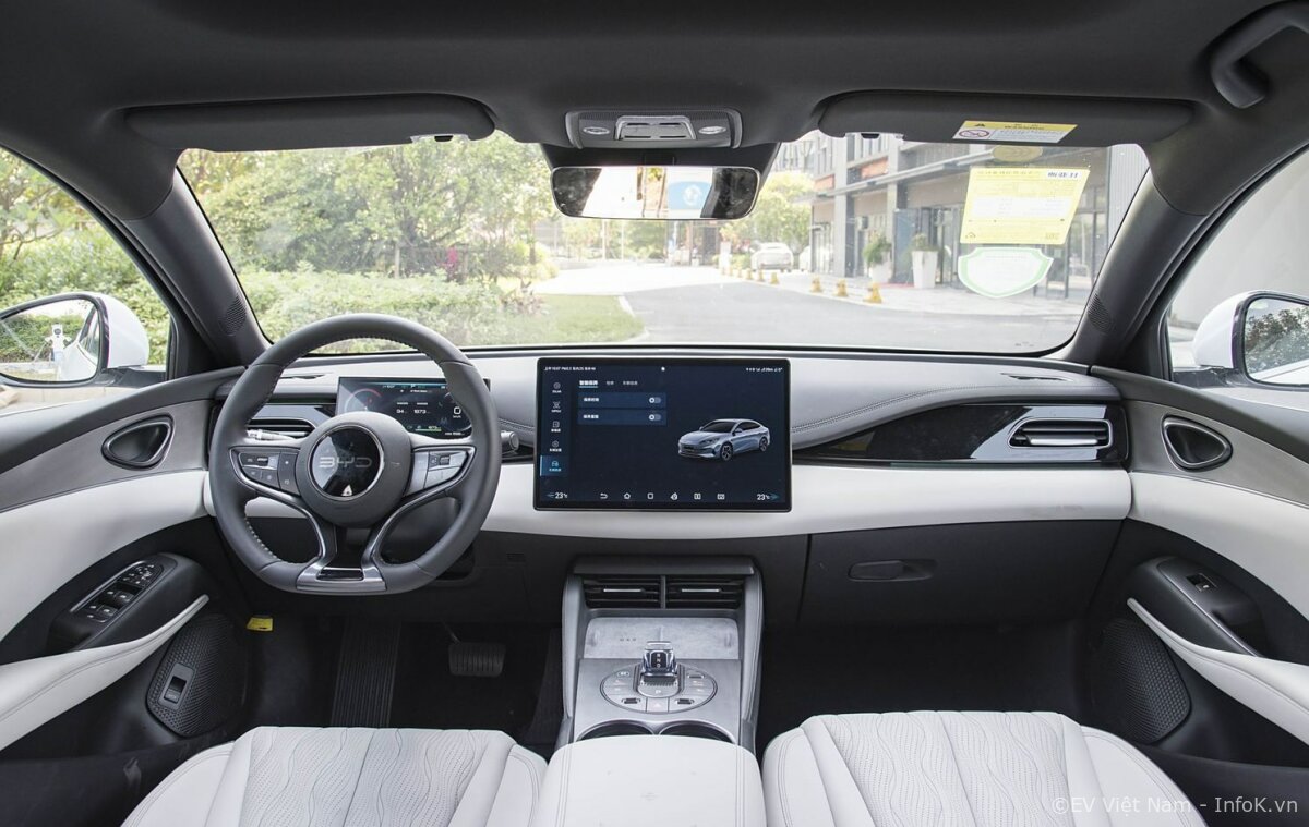 Khoang nội thất mang ngôn ngữ chung của dòng Ocean với các yếu tố thiết kế như bảng điều khiển và cửa ra vào. Nổi bật với màn hình giải trí trung tâm 15,6 inch có thể xoay và màn hình đồng hồ LCD 8,8 inch.