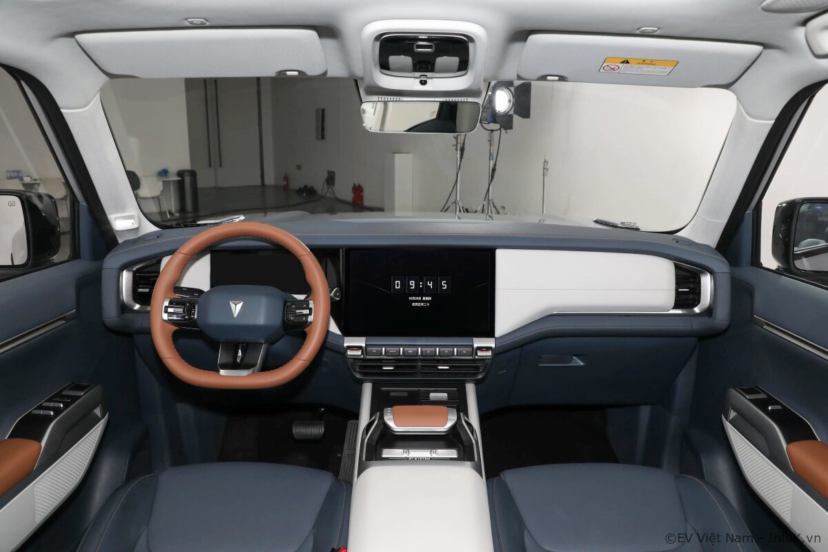 Khoang cabin nội thất có vô lăng ba chấu hình chữ D, bảng đồng hồ 12,3 inch và màn hình điều khiển trung tâm 14,6 inch sử dụng hệ điều hành Deepal OS.