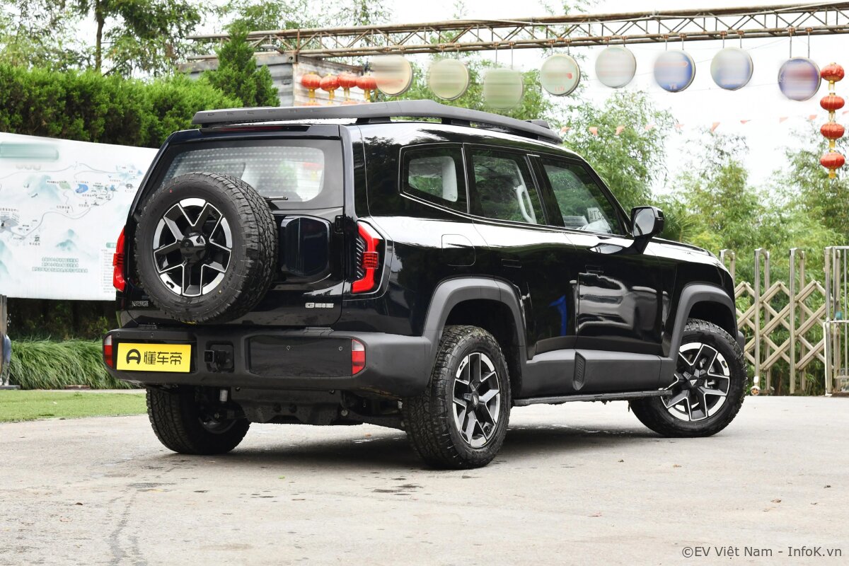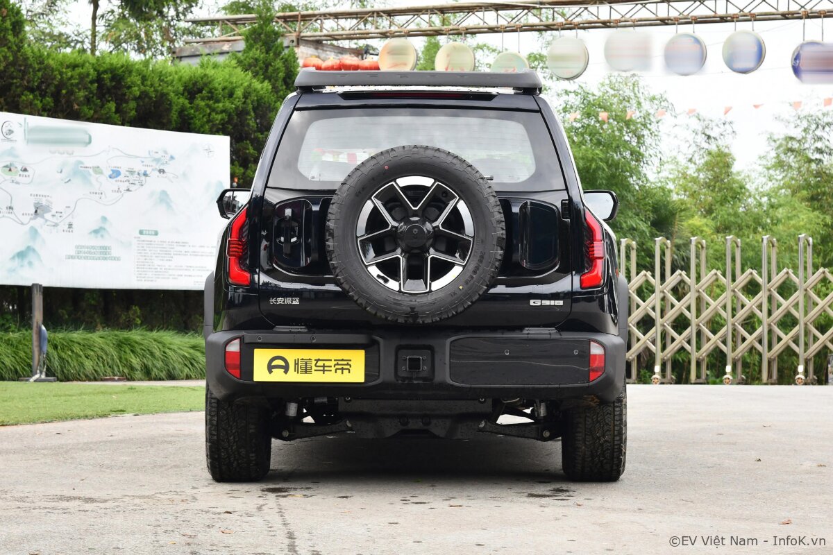 Một lốp dự phòng cỡ lớn được đặt ở giữa phía sau. Đèn hậu dọc đơn giản kết hợp cùng móc kéo có thể tùy chọn.