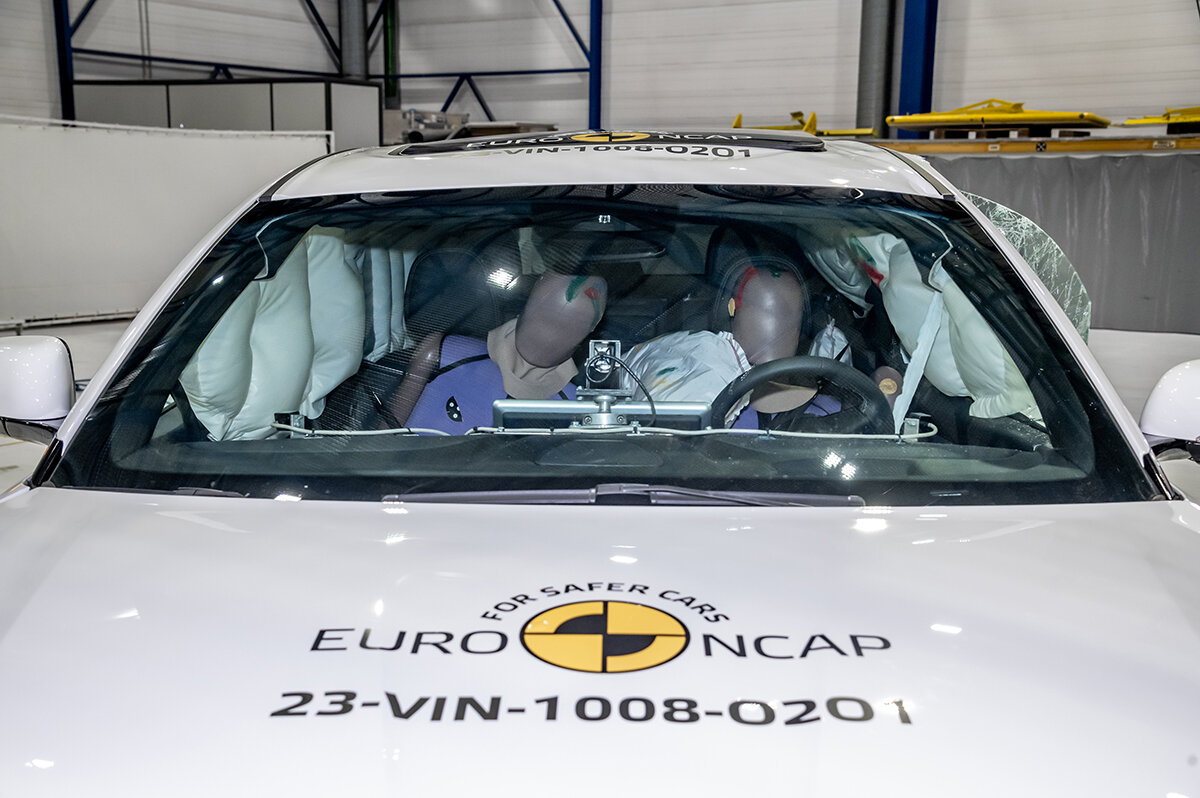Chiếc xe thử nghiệm được lái vào một hàng rào cứng ở tốc độ 64 km/h. Một hình nộm phụ nữ ngồi ở vị trí lái xe và trẻ nhỏ ở ghế sau. Mục đích là để kiểm tra hệ thống an toàn bị động của ôtô, ví dụ như túi khí hay dây đai an toàn.
