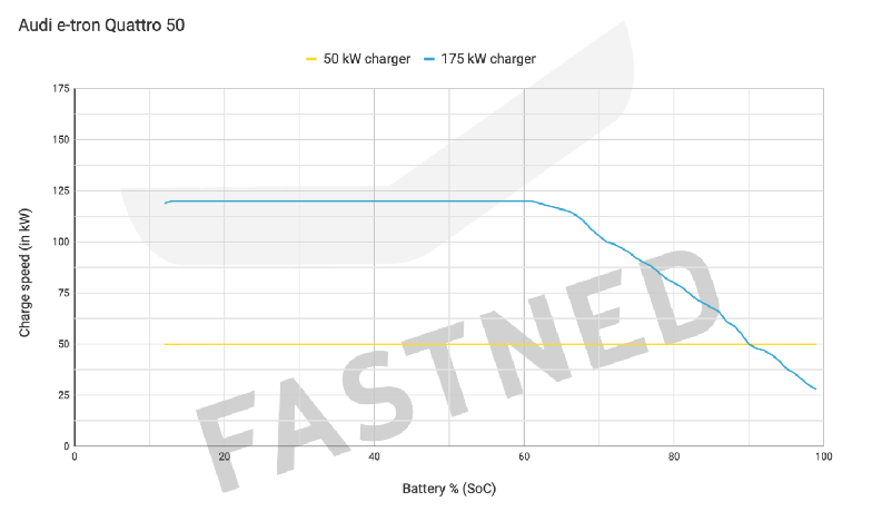 Vận tốc tối đa 190 km/h (118 mph) cho thấy Audi e-tron 50 quattro Sportback không chỉ là một mẫu xe điện thân thiện với môi trường, mà còn là một chiếc xe thể thao đầy mạnh mẽ, sẵn sàng đối mặt với mọi thử thách trên đường.