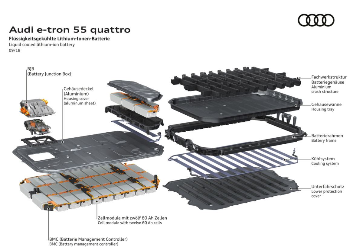 Audi e-tron 50 quattro Sportback tự hào khi sở hữu một hệ thống pin ấn tượng. Dung lượng pin có thể sử dụng là 64.7 kWh, với tổng cộng là 71 kWh, cho thấy khả năng cung cấp năng lượng lâu dài cho xe. Pin sử dụng công nghệ Lithium-ion tản nhiệt bằng chất lỏng, đảm bảo hiệu quả và an toàn trong quá trình vận hành.