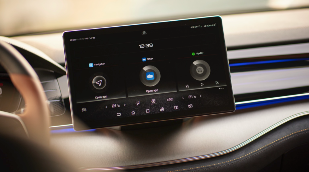 Hệ thống thông tin giải trí với màn hình cảm ứng trung tâm kích thước lớn 12,8 inch có thể xoay, màn hình người lái 12,3 inch.