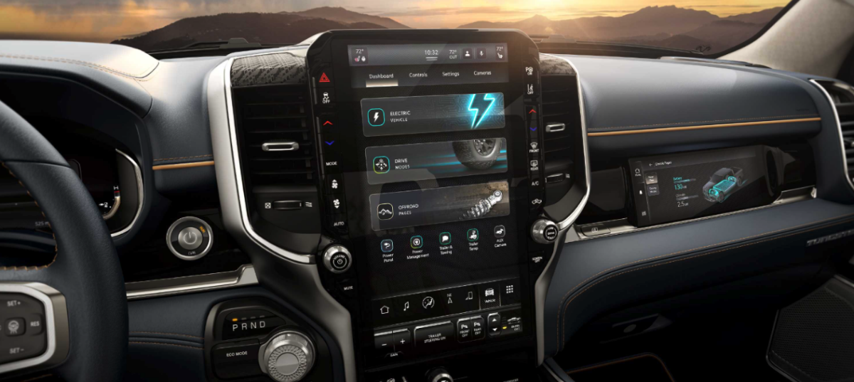 Xe điện bán tải Ram 1500 REV 168kWh 2023 được trang bị các tính năng và tiện nghi đáng chú ý. Màn hình trung tâm của xe có kích thước 14.5 inch, cung cấp một giao diện điều khiển dễ sử dụng. Ngoài ra, xe còn có màn hình kính hiển vi 12.3 inch cho người lái và màn hình 12.3 inch cho hành khách.